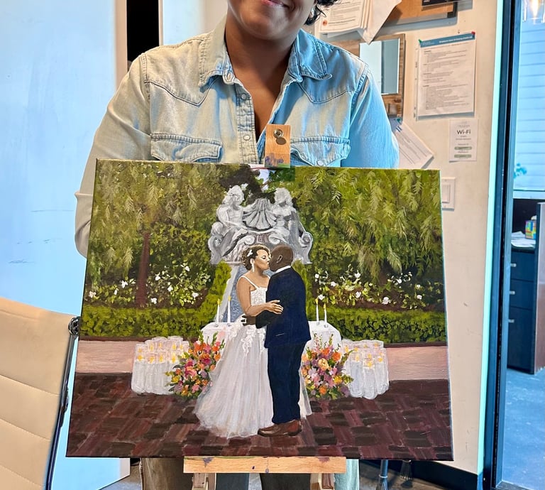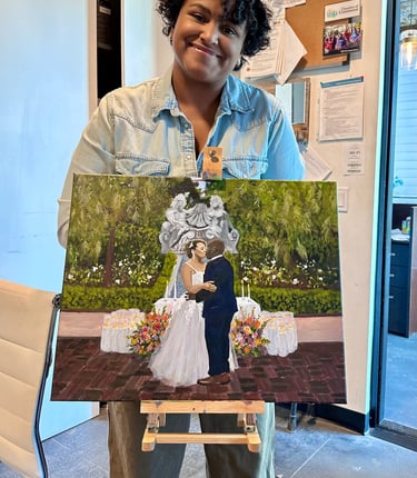 I believe art is a bridge: between people, places, and time. My work blends bold color, movement, and emotion, often inspired by nature, music, and the stories people share with me. Whether painting a 30-foot wall, a live wedding moment, or a tiny keepsake, I am dedicated to creating art that feels personal, joyful, and alive.